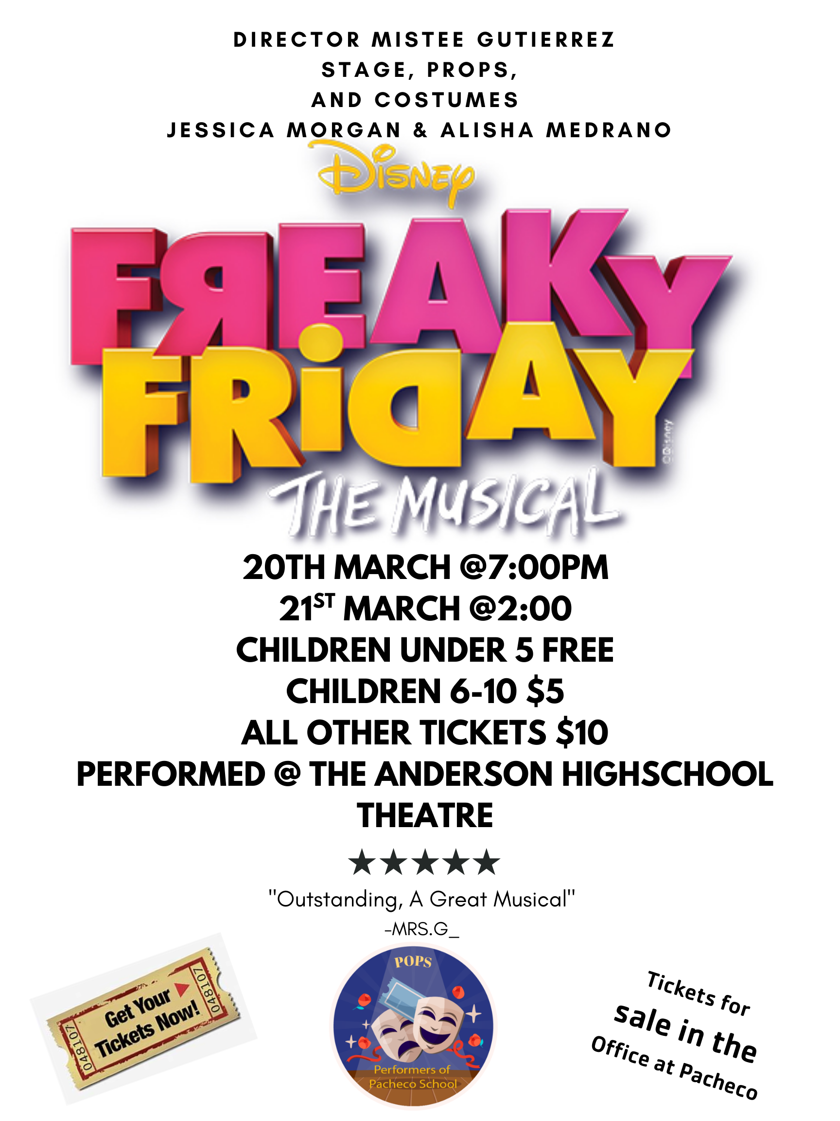 Pacheco POPS Presents: Freaky Friday the MusicalJoin us this weekend to support our talented students in a fun and energetic performance of Freaky Friday the Musical.Showtimes: Friday Night at 7:00...
